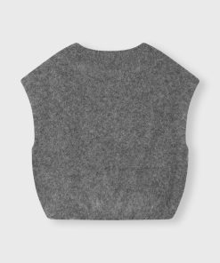 10DAYS Pullunder “Ballon Hairy Knit Top” Anthrazit Melange. Relaxed Fit Pullunder in Ballonform, aus weichem Alpaka-Wollmix und einem Innenfutter aus weicher Baumwolle. Mit einem breiten Rippenstrickausschnitt, einem auf der Schulter aufgestickten „10“-Monogramm und einem in Falten gelegten und elastischen Saum.
