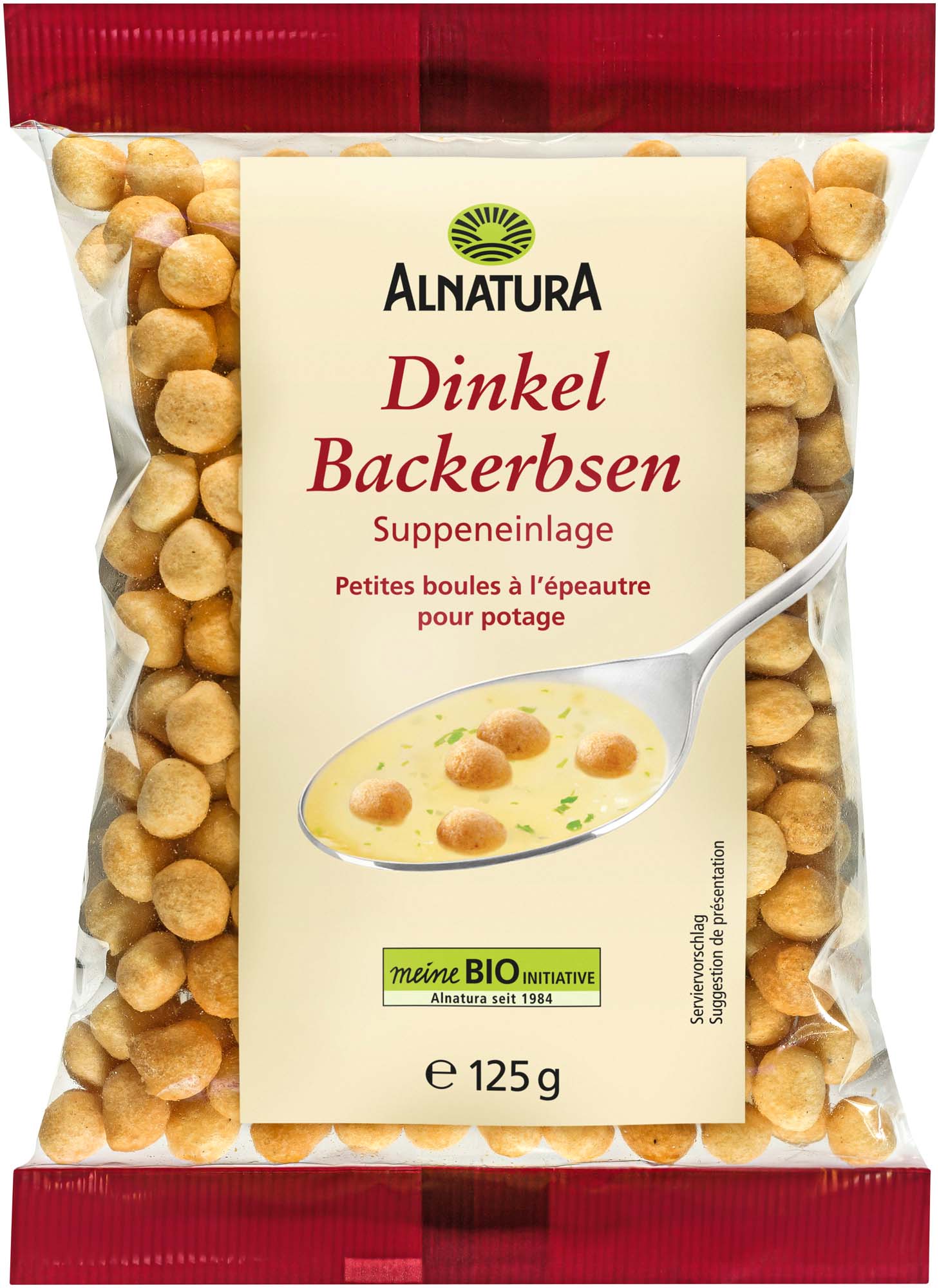 Gebäck aus Dinkel schmeckt besonders nussig-herzhaft – perfekt also für Backerbsen! Die knusprigen Getreidekügelchen dienen traditionell als Suppeneinlage. Die Alnatura Dinkel-Backerbsen in Bio-Qualität eignen sich aber nicht nur für Suppen aller Art: Auch Salaten geben sie als Topping eine knusprige Note. Und natürlich kann man sie einfach so zwischendurch als herzhaftes Gebäck knabbern.