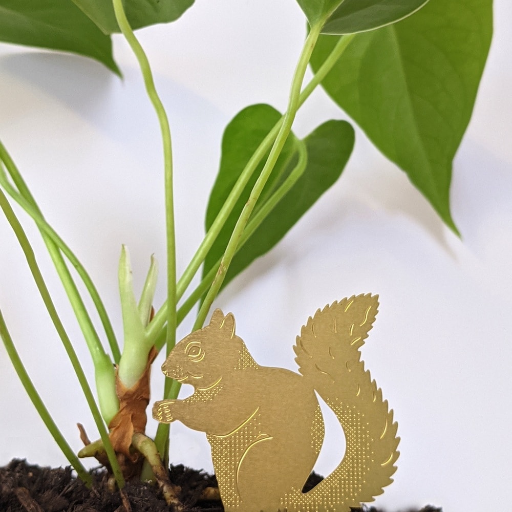 Die feine Figur aus Messing lässt sich einfach in die Erde des Blumentopfs stecken. Die Plant Animals sind eine ressourcenschonende, vegane und nachhaltige Pflanzen-Deko für die Wohnung und verzaubern Pflanzen- und Tierfreunde gleichermaßen.