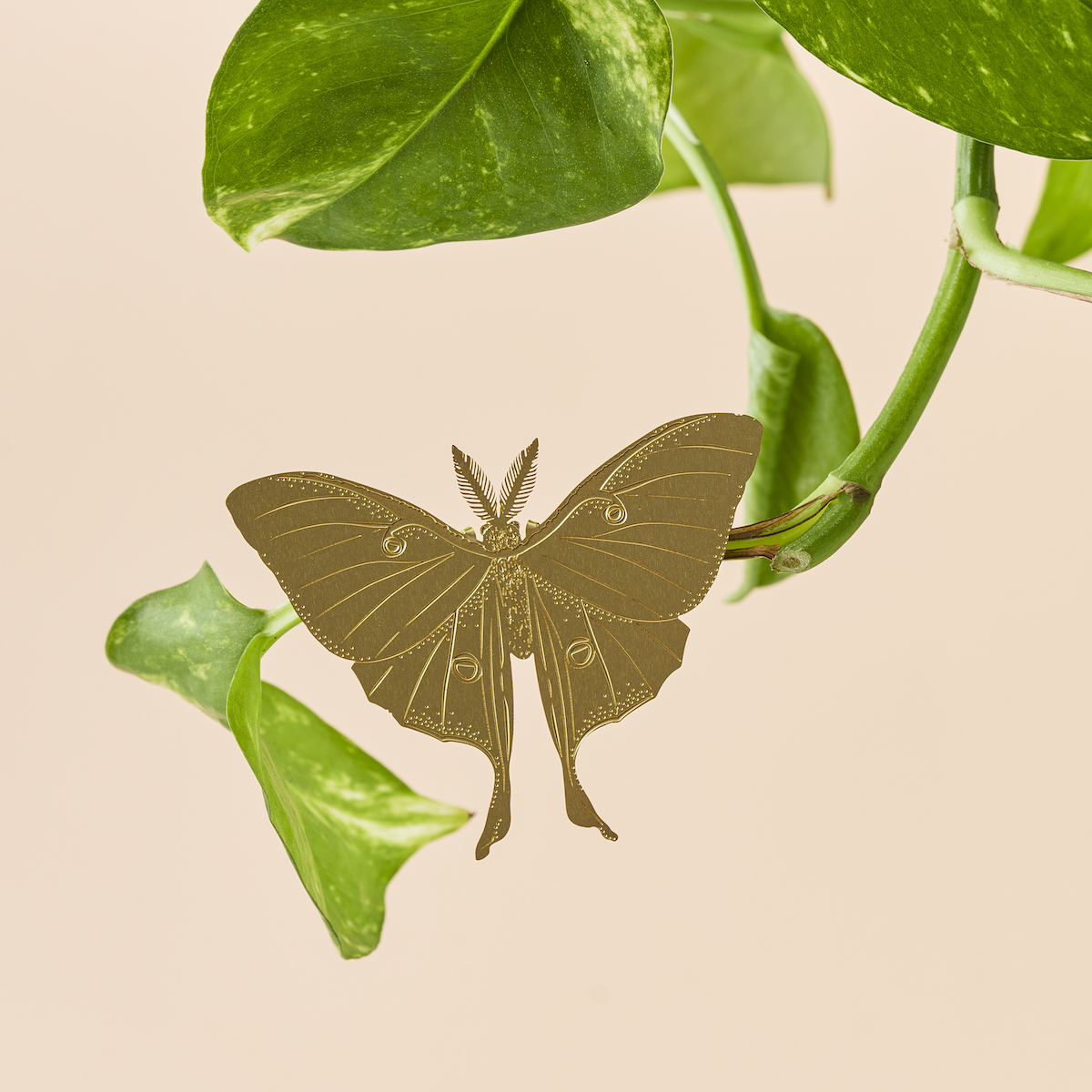 Die feinen Figuren aus Messing lassen sich durch ihre biegbaren Füßchen ganz einfach an Pflanzen befestigen. So kann der wunderschöne Nachtfalter auf den Stängeln Ihrer Zimmerpflanzen oder in einem Blumenstrauß ruhen. Die Plant Animals sind eine ressourcenschonende, vegane und nachhaltige Pflanzen-Deko für die Wohnung und verzaubern Pflanzen- und Tierfreunde gleichermaßen.