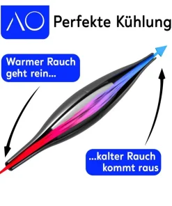 Es kann direkt auf einen Silikonschlauch aufgesteckt werden und nach einigen Stunden im Kühlfach, erfrischt es den Rauch.