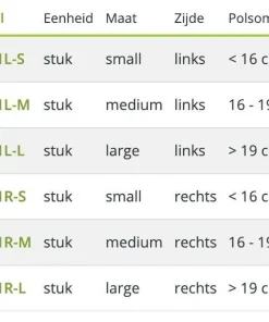 Es ist wichtig, die richtige Größe zu wählen, damit die Stütze gut zur Form Ihrer Hand passt. Nur dann kommt die anatomische Passform zur Geltung. Die Größentabelle unten zeigt an, welche Größe Sie am besten auswählen können. Messen Sie dazu den Handgelenkumfang an der dünnsten Stelle des Unterarms. Sie können die richtige Größe in der folgenden Tabelle lesen.