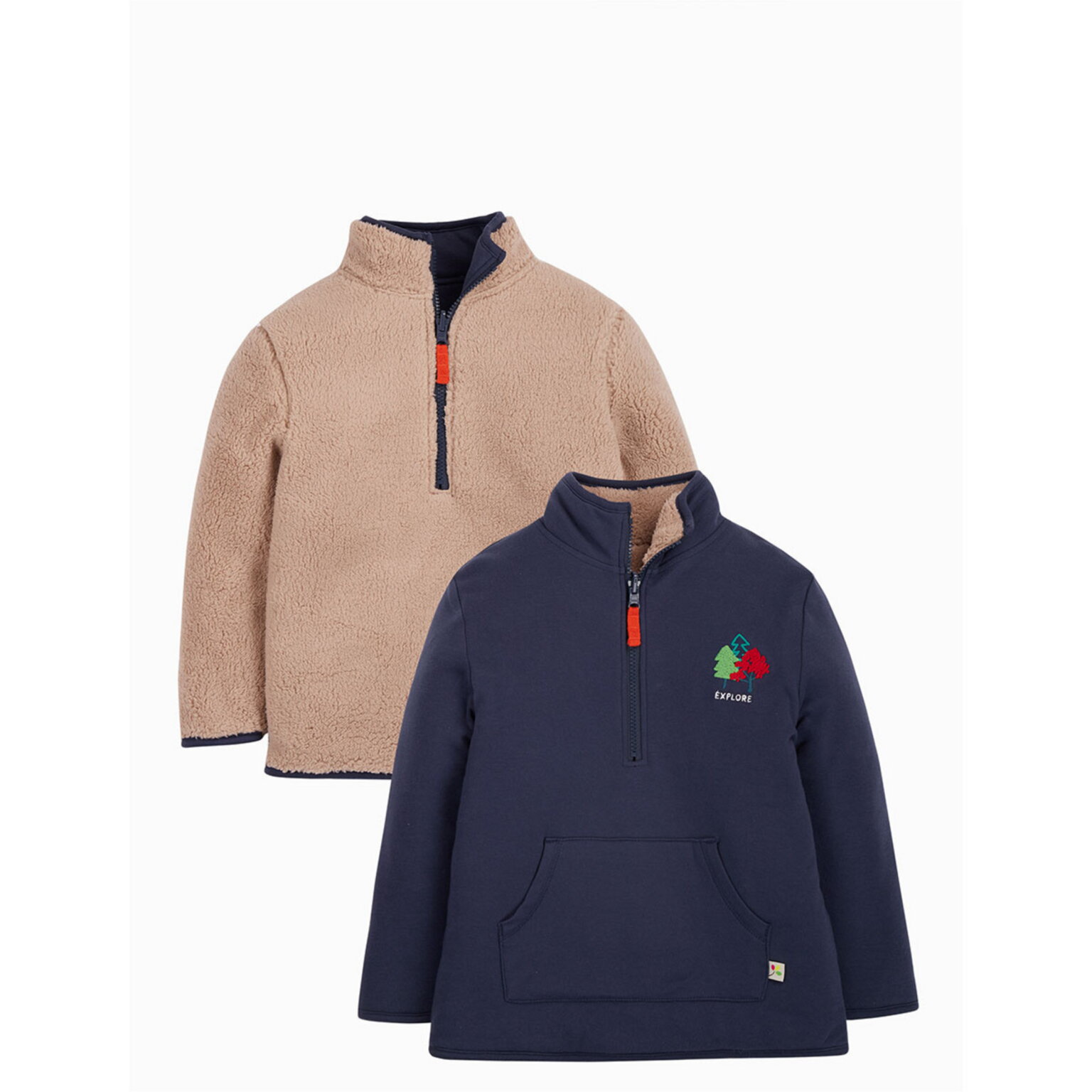Der praktische Half-Zip schützt bei kaltem Wind den empfindlichen Halsbereich und kann, wenn die Temperaturen steigen, als Belüftungsmöglichkeit genutzt werden. Die tolle Wendemöglichkeit rundet den The National Trust Reversible Fleece Pullover von Frugi ideal ab.