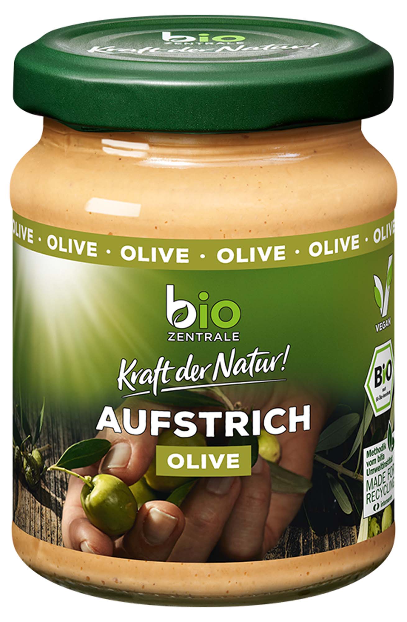 Unser biozentrale Aufstrich Olive ist ein herzhafter, mediterraner Brotaufstrich auf der Basis von Sonnenblumenkernen. Er ist cremig frisch und überzeugt mit feinen Olivenstückchen. Unser Aufstrich aus grünen Oliven ist vegan, gluten- und laktosefrei. Er schmeckt besonders lecker auf frischem Brot, Brötchen, Knäckebrot oder auf unseren biozentrale Mais- und Reiswaffeln sowie unserem Knusperbrot Erbse Linse. Auch zum Würzen und Verfeinern von warmen und kalten Gerichten oder auch für leckere Saucen und Dips ist unser Aufstrich ideal. Probiere auch unsere anderen, vielfältigen Aufstrich-Sorten!