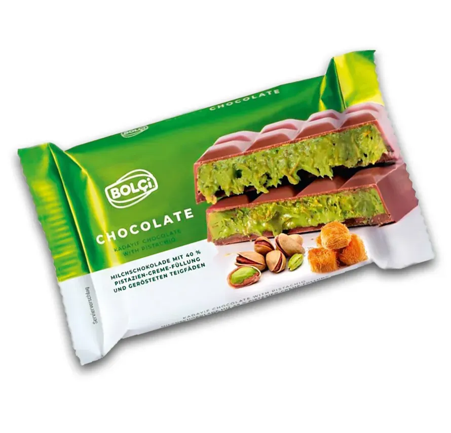 Genießen Sie eine exquisite Kombination aus zarter Vollmilchschokolade, feiner Pistaziencreme und knusprigem Kadayif. Diese besondere Spezialität überzeugt mit ihrem einzigartigen Geschmack und einer perfekten Balance aus süßer Cremigkeit und köstlichem Crunch. Entdecken Sie jetzt dieses unvergleichliche Genusserlebnis!