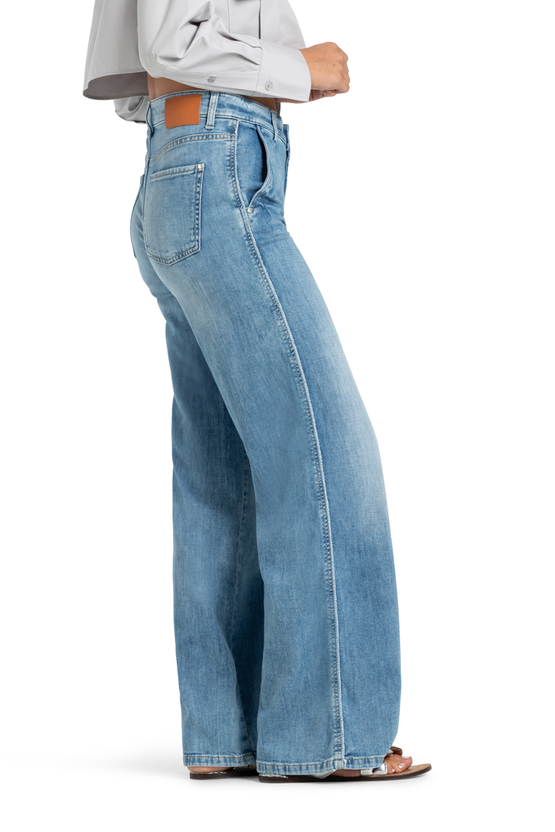 Cambio Jeans “Alek” wide leg soft blue. Wide Leg Jeans ALEK in einer langen Beinlänge. Die soft blue Denim in heller Waschung ist ein modisches Highlight der neuen Kollektion und zaubert eine feminine fließende Silhouette. Eine coole Jeans mit weitem Bein, perfekt für die kommende Saison.