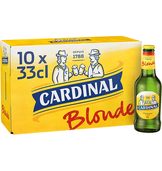 Cardinal Blonde, mit einem Alkoholgehalt von 4,8%, ist nun in einem praktischen 10er-Pack mit 33 cl Einwegflaschen erhältlich. Diese Verpackungsoption bietet die perfekte Kombination aus Komfort und Qualität für Fans des leichten, erfrischenden Lagers. Mit seiner klaren, goldenen Farbe und dem harmonischen Geschmack, der durch die feine Auswahl an Malz und Hopfen erreicht wird, steht Cardinal Blonde für die renommierte Schweizer Braukunst, die seit Generationen geschätzt wird.