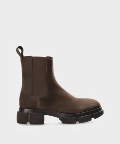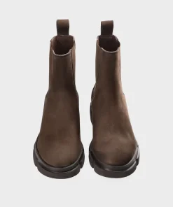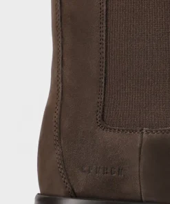 Copenhagen Studios Boots “CPH570” Nubuc Chocolate. In Chocolate. Chelsea Boots aus weichem Nubukleder. Knöchelhohe Chelsea-Silhouette. Runde Kappe. Elastische Seiteneinsätze. Zugschlaufe am Schaft. Goldfarbenes Logo an der Außenseite. Ein ausdrucksstarker und zugleich minimalistischer Style.