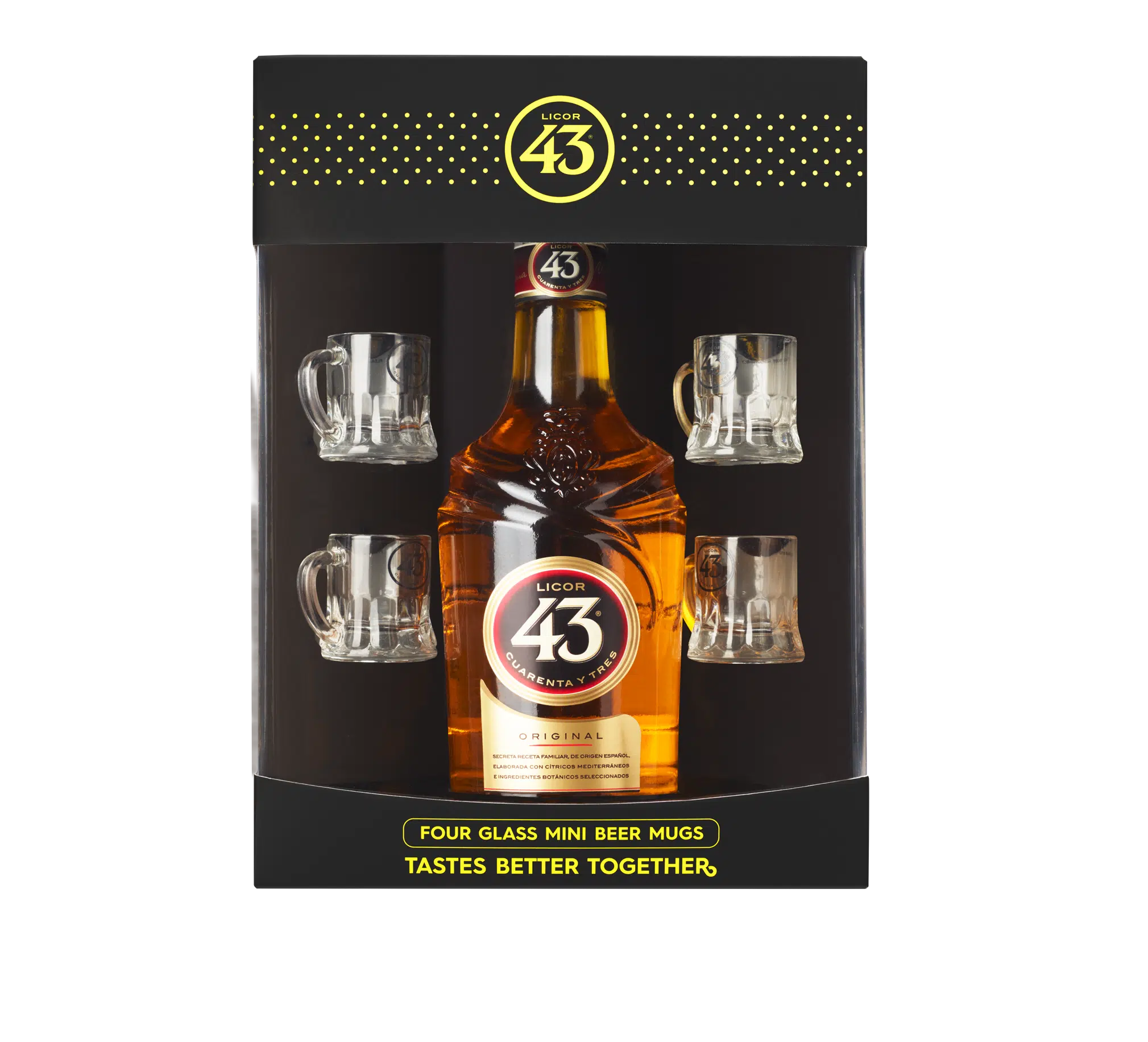 Cuarenta y Tres 43 , Geschenkspackung mit 4 Mini Beermugs 31% Vol. 70 cl
