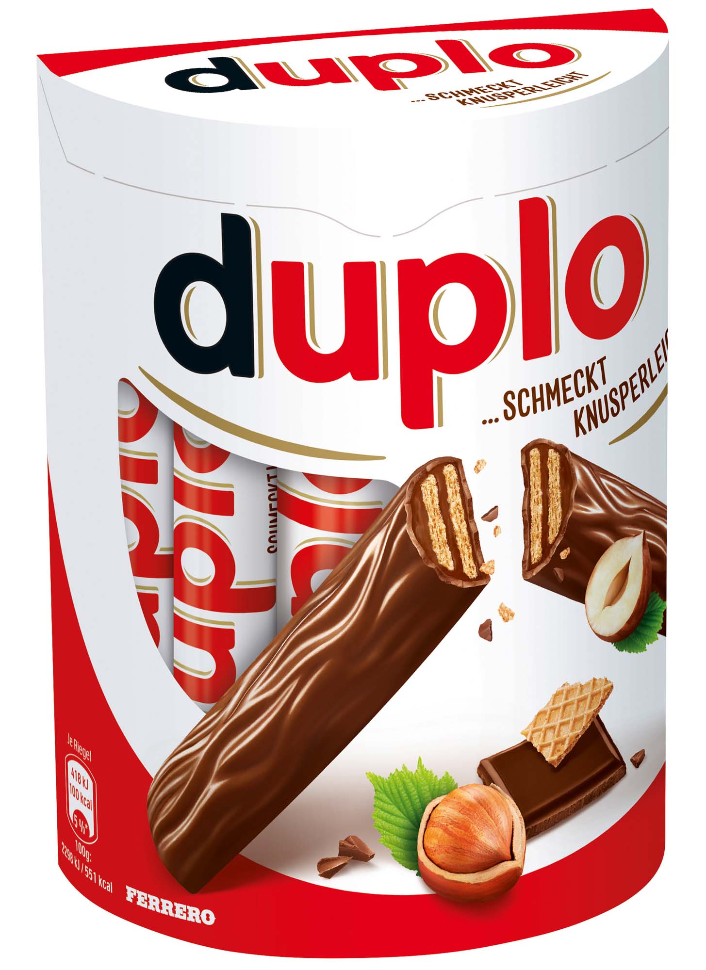 duplo, der besonders knusperleichte Riegelgenuss: Feine Nugatcreme mit knusprigen Waffeln, umhüllt von leckerer Vollmilchschokolade. So unwiderstehlich schokoladig und knusperleicht schmeckt nur duplo,