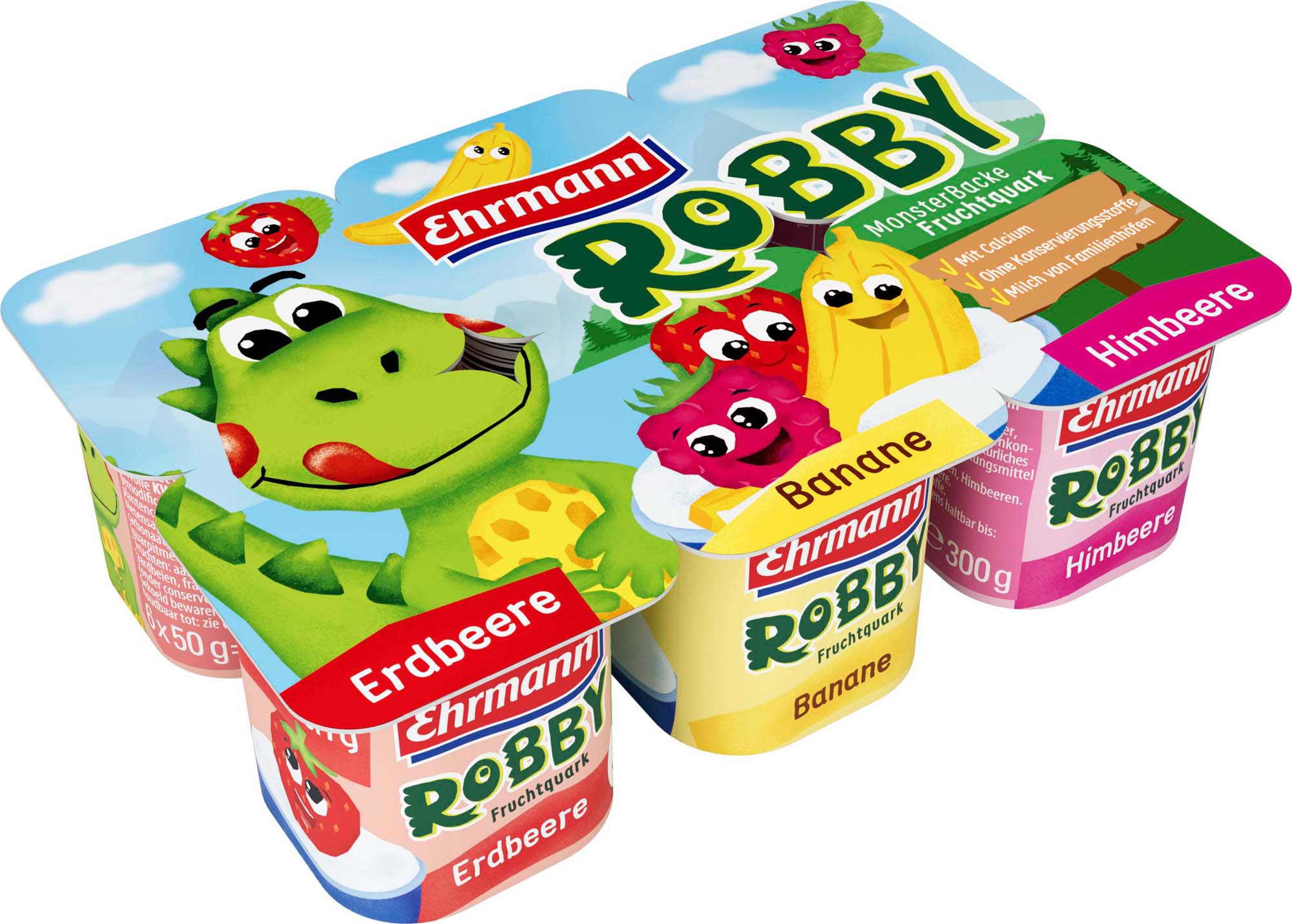 Ehrmann Monsterbacke Erdbeere, Banane, Himbeere 6x50g