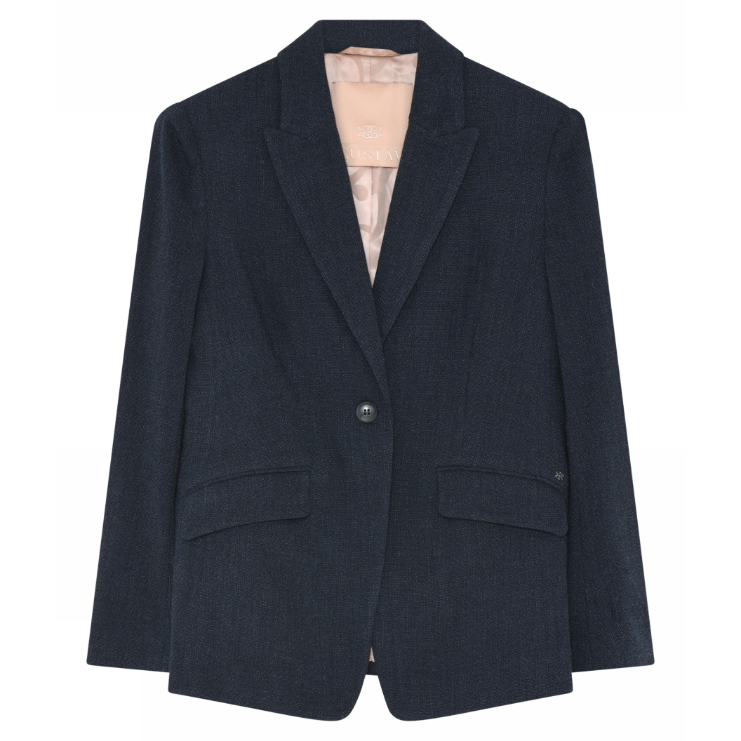 Zusätzlich hat der Blazer praktische Elemente wie Taschen und einen Schlitz auf der Rückseite, um Bewegungsfreiheit zu gewährleisten. Er lässt sich vielseitig kombinieren – sowohl für formelle Anlässe als auch für legere Outfits. Insgesamt strahlt der blaue Blazer von Gustav Denmark Stil und Raffinesse aus.