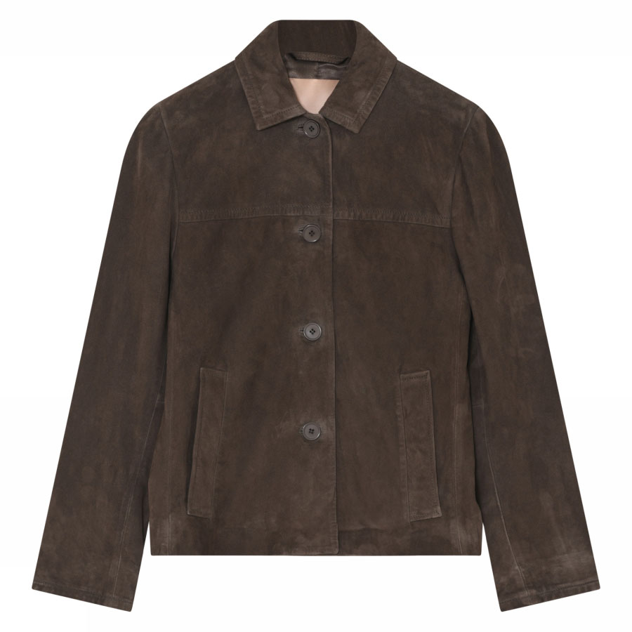 Gustav Denmark Lederjacke “Soho” Braun. Die Jacke “Soho” von Gustav Denmark vereint urbanen Chic mit skandinavischer Eleganz – ein echtes Statement-Piece für stilbewusste Frauen. Mit ihrer klaren Linienführung, aus edlem Ziegenwildleder und dem perfekten Mix aus Struktur und Lässigkeit bringt sie frischen Wind in jede Garderobe.