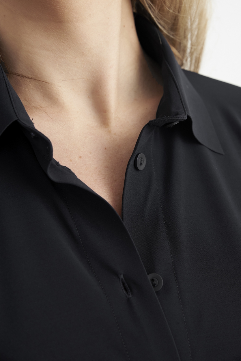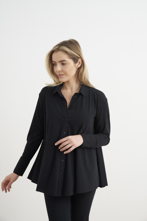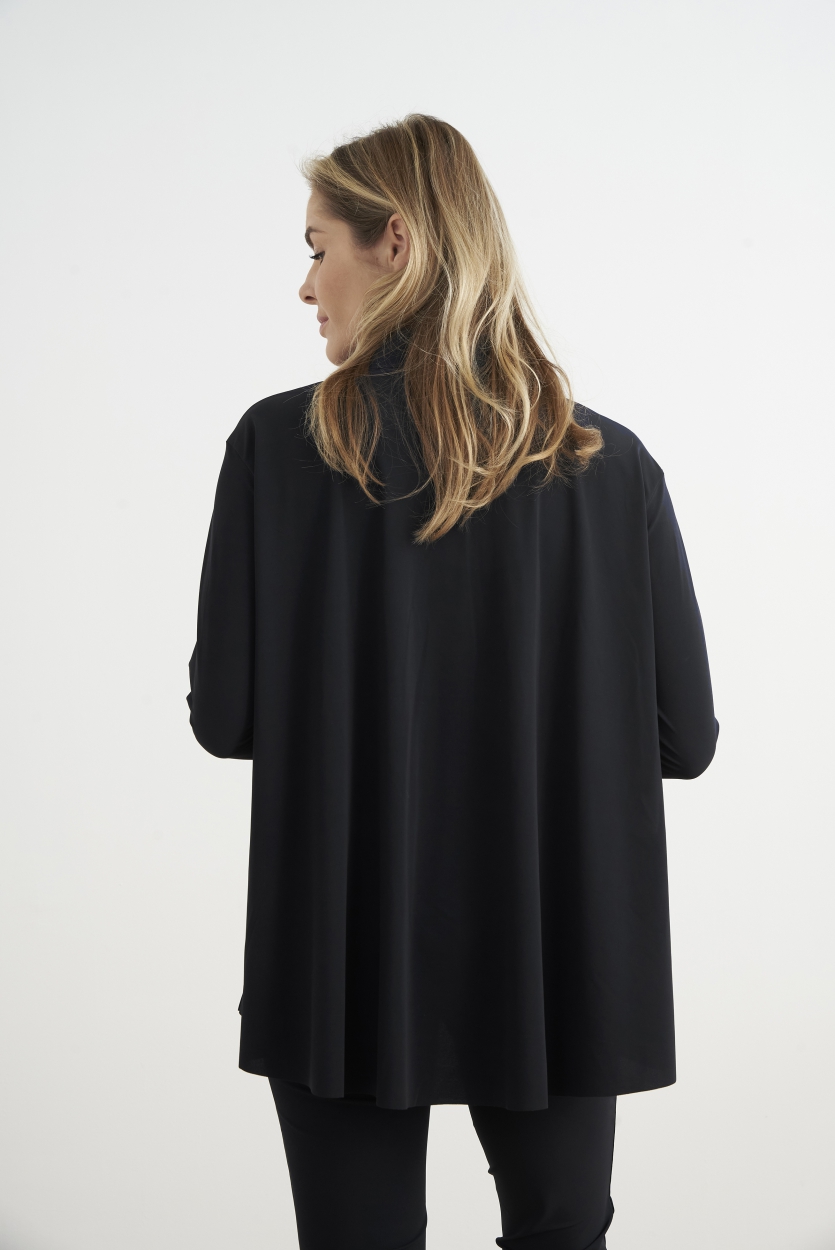 Japan TKY Bluse “Milly” Schwarz. Eine wunderschöne Bluse aus komfortablem Technostretch. Das Oberteil überzeugt durch seinen Schnitt in A-Linien-Form und lässt sich gut kombinieren.