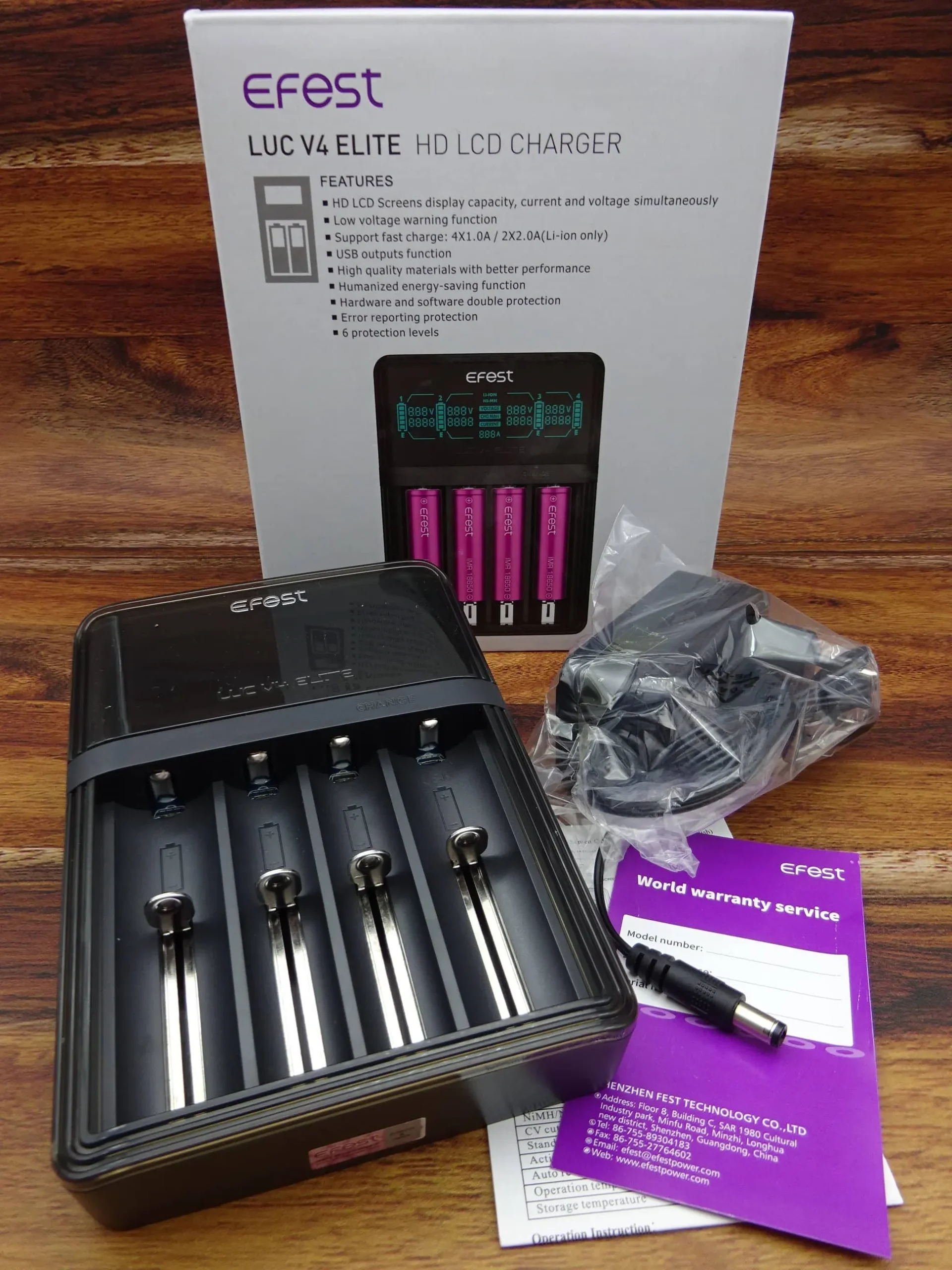 Lieferumfang: Ladegerät Efest LUC V4 Elite, 12V 2A Netzteil, Bedienungsanleitung in Deutsch, Englisch Französisch, Italienisch, Spanisch…