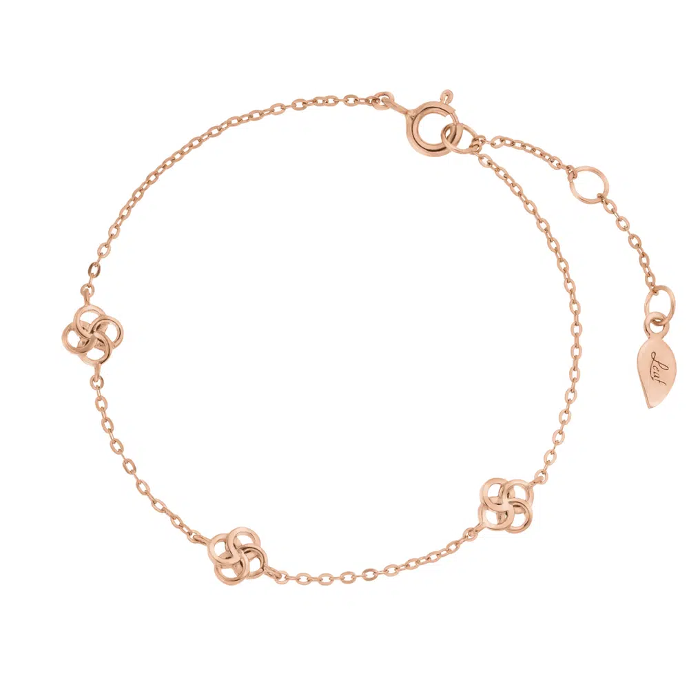 Leaf Armkette “Clover Charm”, Rosegold Vergoldet. Tauche ein in die bezaubernde Welt der “Clover Charm” Kollektion. Mit dieser Armkette aus feinem 18 Karat vergoldetem Silber trägst du das Glück immer bei dir. Die kleinen vierblättrigen Kleeblätter, die in die Kette eingearbeitet und im modernen Design entworfen wurden, zeigen vier Kreise, die fest miteinander verbunden sind. Das Glückssymbol steht für Glück, Liebe, Hoffnung und den Wunsch nach positiven Entwicklungen. Verschenke dir oder einem geliebten Menschen diesen zeitlosen Armschmuck, der im Handumdrehen einen ganzen Look definiert und schnell zum Lieblings Schmuck piece wird.