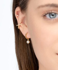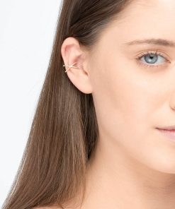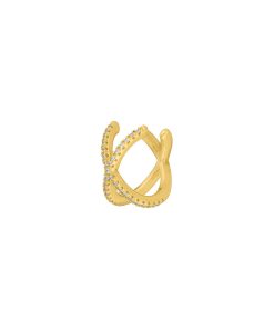 Leaf Earcuff Cross CZ, Gelbgold vergoldet. Dieser Earcuff aus Sterlingsilber besticht mit seiner einfachen Eleganz gepaart mit einer glänzenden 18 K Vergoldung und funkelden Zirkoniasteinen. Einfach aufgesteckt verleiht er jedem Outfit den besonderen Touch ohne dabei aufdringlich zu wirken. Mit diesem Schmuckstück bleiben keine Accessoire-Wünsche offen und lässt sich perfekt mit anderem Ohrschmuck kombinieren.
