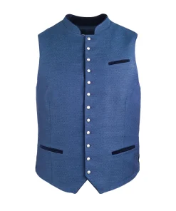 Österreichisches Trachtensakko aus 100% Leinen in klassischem Marine mit naturfarbenen Kontrasten.