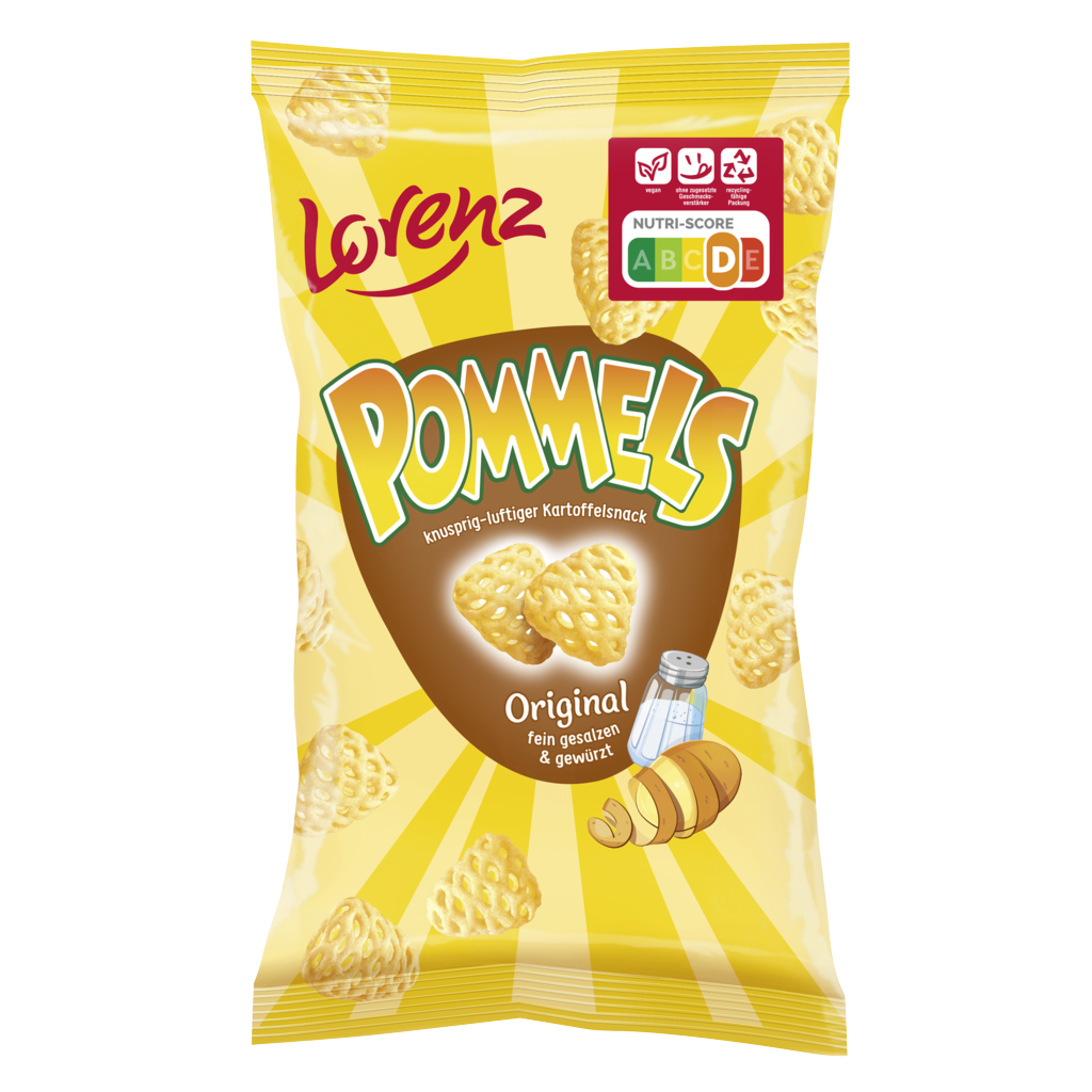 Pommels Original sind der knusprig-lockere Kartoffelsnack, gewürzt mit einer feinen Salznote für einen unwiderstehlichen leckeren Geschmack.