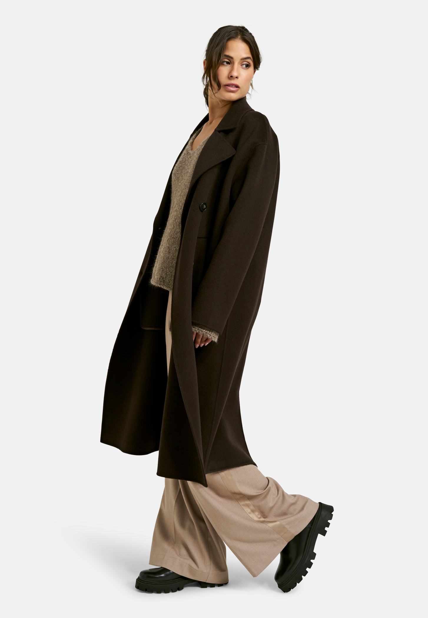 Milano Italy Mantel “Mocca”. Dieser Mantel von Milano Italy ist ein eleganter, doppelreihiger Wollmantel mit Reverskragen, der dich stilvoll durch jede Jahreszeit begleitet. Die doppelte Knopfreihe verleiht dir eine klassische, raffinierte Silhouette, während der Reverskragen deinem Outfit eine hochwertige Note verleiht. Die praktischen Taschen bieten ausreichend Stauraum für Kleinigkeiten wie Schlüssel oder Smartphone, ohne dein Outfit zu überladen. Die Ärmel haben eine klassische Länge und schließen sauber ab. Die hochwertige Wolle sorgt für Wärme, Atmungsaktivität und eine edle Optik. Der Mantel ist vielseitig kombinierbar: ideal zu Anzughose für seriöse Anlässe oder zu Jeans für einen smart-c casual Look.