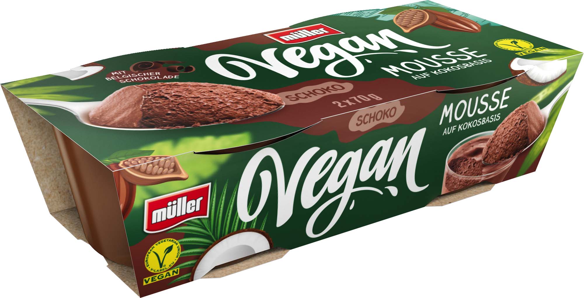 Luftig aufgeschlagen und verfeinert mit leckerer, belgischer Schokolade! Das Müller Vegan Mousse auf Kokosbasis ist ein Traum für alle Chocoholics.