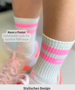 Ooley Socken “Streetmood Light White – NEON Pink”. Leicht. Lässig. Lautlos cool. Du liebst starke Farben mit stilvollem Understatement? Dann sind die “NEON Pink” genau dein Match. Die ultraleichten Streetmood Socken vereinen sportliche Raffinesse mit moderner Ästhetik – für einen Look, der auffällt, ohne laut zu sein. Der mittelhohe Schaft macht sie zum perfekten Begleiter an warmen wie kühleren Tagen. Dank 85 % Bio-Baumwolle genießt du luxuriösen Tragekomfort, der sich sofort gut anfühlt – atmungsaktiv, weich und trotzdem robust