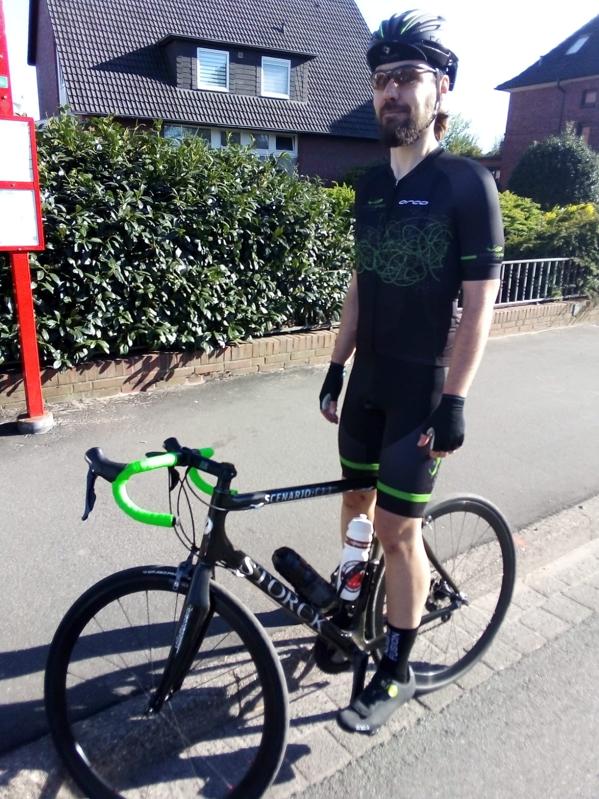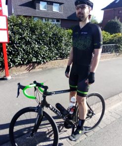 Zusammen mit Orca haben wir unser erstes Radkit produziert. Die Radhose ist limitiert und fällt eher normal aus, hat aber recht kurze Träger. Im Zweifelsfall lieber eine Nummer größer als normal bestellen.