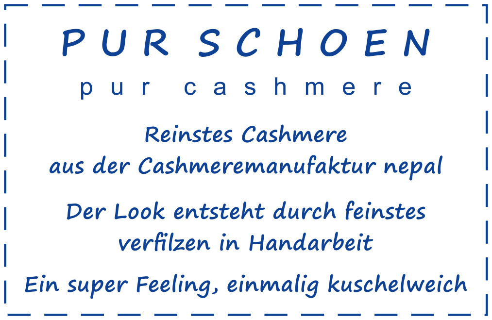 Grundlage für den Schal mit dem Label PUR CASHMERE ist die reine, zertifizierte Kaschmirwolle in ihrer biologischen Urform, frei von jeglicher Beimischung. Die Rohwolle stammt aus der Region Tibet sowie der Mongolei, der natürlichen Heimat der Kaschmirziege. Eine ausgeklügelte Stricktechnik erzeugt die Voraussetzung für eine besonders leichte, transparente Struktur. Bedeutsam ist hierbei das feine Kaschmirgarn aus traditioneller Verarbeitung. Der Kaschmirschal von PUR SCHOEN wird in einer Fertigungsstätte in Nepal, in einem einzigartigen Verfahren, mehrfach gewaschen und in sorgfältiger Handarbeit gefilzt. Das Tragegefühl kann man erleben und macht den Schal zu einem ausnahmslos kuscheligen, unverzichtbaren modischen Begleiter.