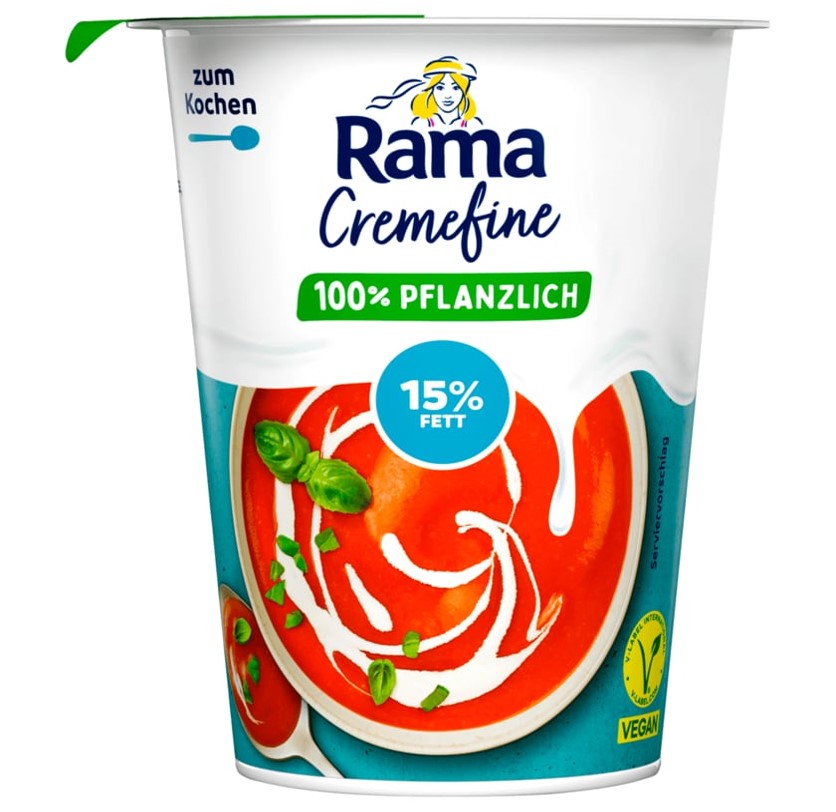 Mischung aus Linsenzubereitung und pflanzlichen Fetten und Ölen. Perfekt für cremige Pasta, Suppen und SaucenPerfekt für cremige Pasta, Suppen und Saucen. Rama setzt sich für den nachhaltigen Anbau von Palmöl ein. Mehr unter: rama.com