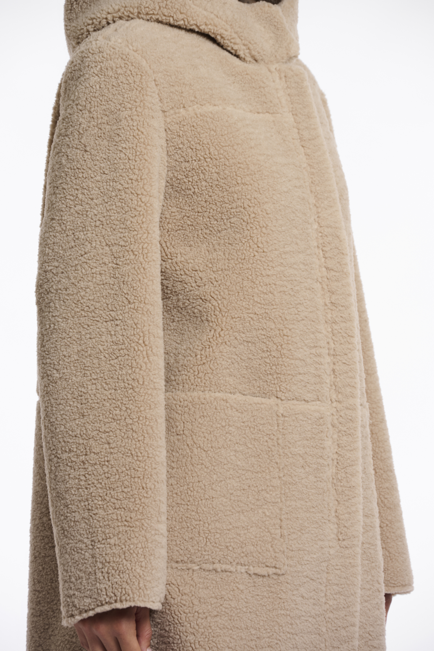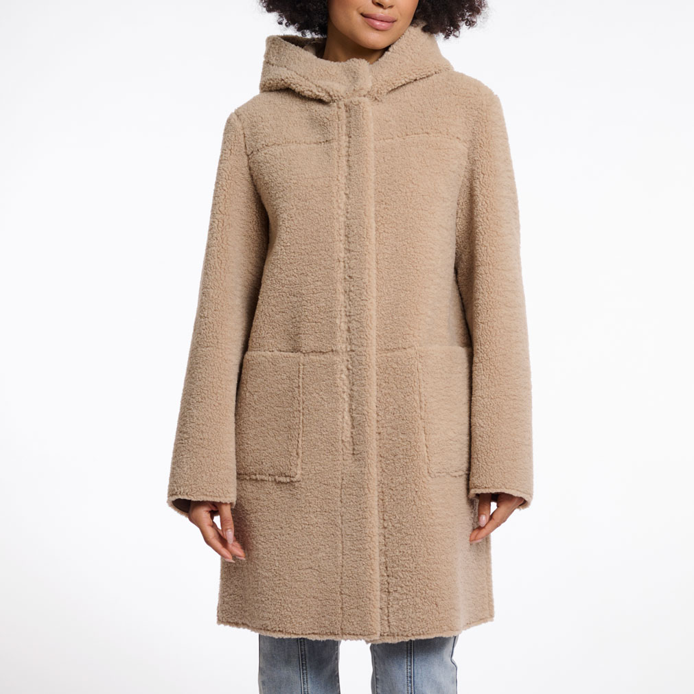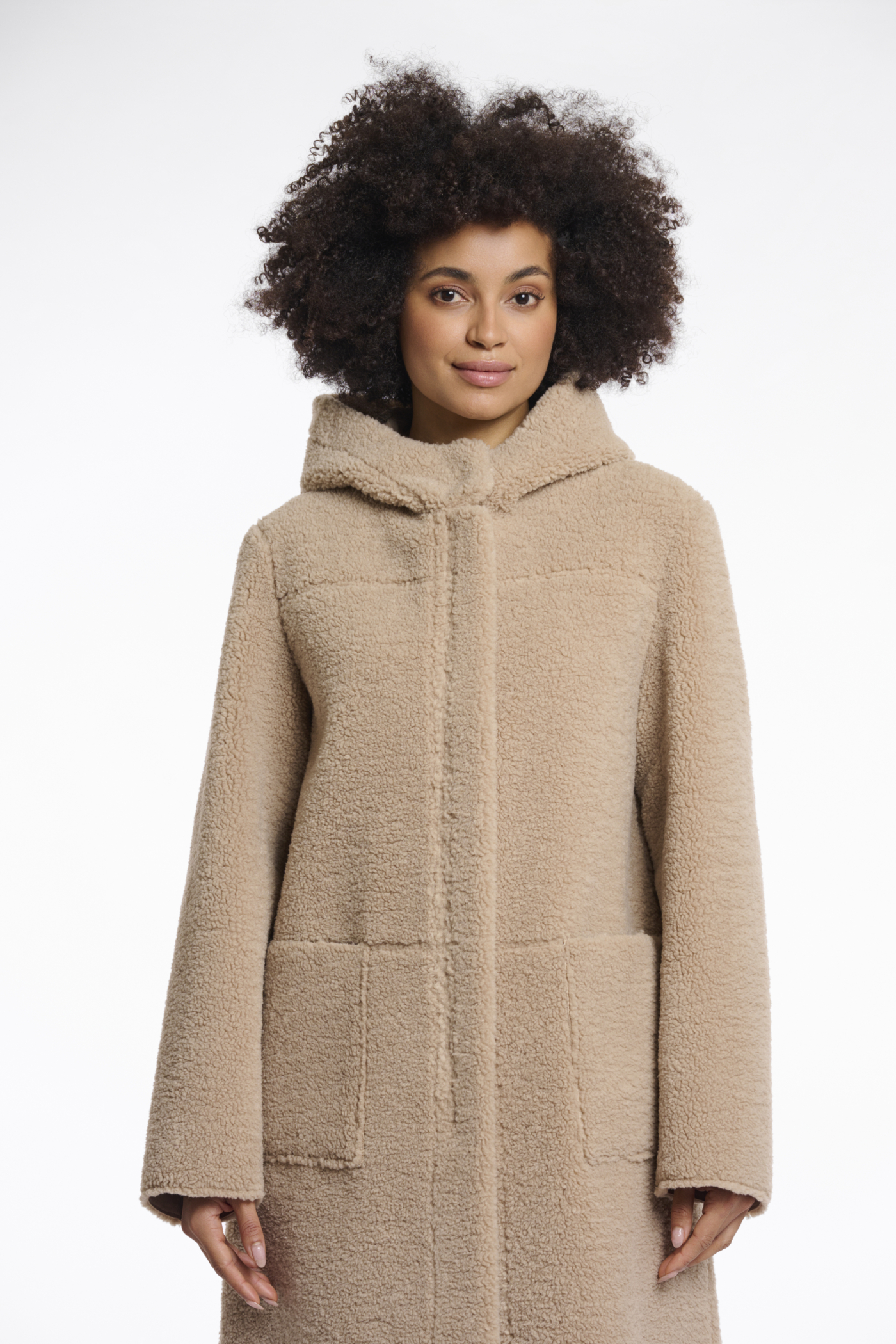 Rino & Pelle Wendemantel “Alina Oat” . Entdecke den Wendemantel “Alina Oat” – ein vielseitiges Teil, das Du auf zwei Arten tragen kannst. Auf der einen Seite sorgt luxuriöses Kunstleder mit glänzenden Reißverschlüssen und edlen Details für einen eleganten Look. Dreh ihn um und genieße die weiche, kuschelige Faux-Shearling-Optik. Der verdeckte Reißverschluss, die Kapuze und der praktische Druckknopfverschluss schenken Dir dabei Komfort und Stil.
