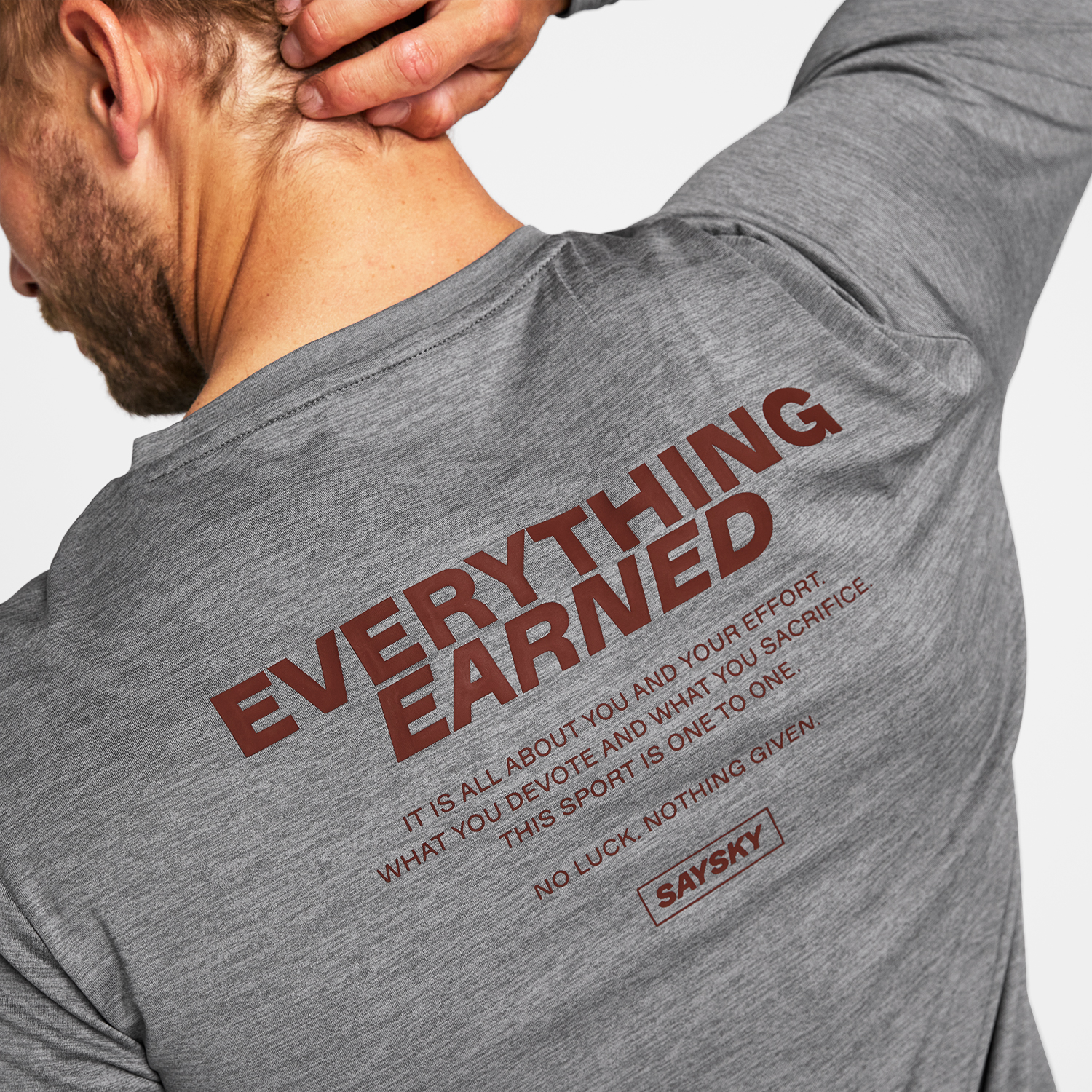 Das SAYSKY Statement Pace Longsleeve ist ein Laufshirt aus recyceltem Polyester. Es kommt mit einem kleinen gewebten SAYSKY Label auf der Brust und einem Statement auf dem Rücken. Die Passform ist regulär und so konzipiert, dass es dir sowohl Komfort als auch ein hohes Maß an Leistung beim Laufen bietet.