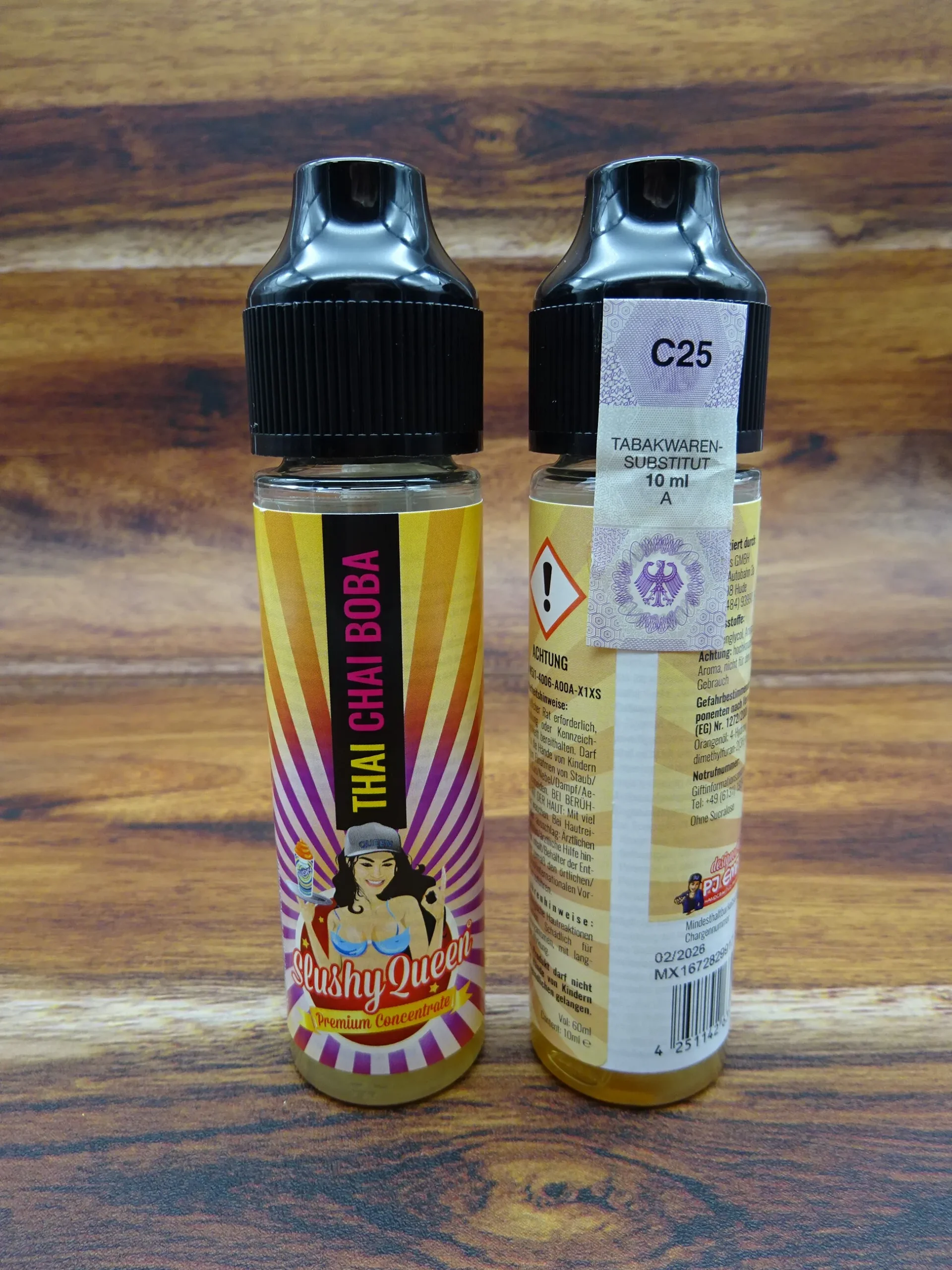 Das Thai chai boba on the roxx von Slushy Queen gehört mit zu den modernsten Shake ’n Vape Entwicklungen auf dem E-Zigarettenmarkt. Denn jede Flasche Aroma enthält die ideale Menge für 60 ml Liquid.