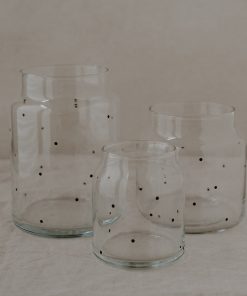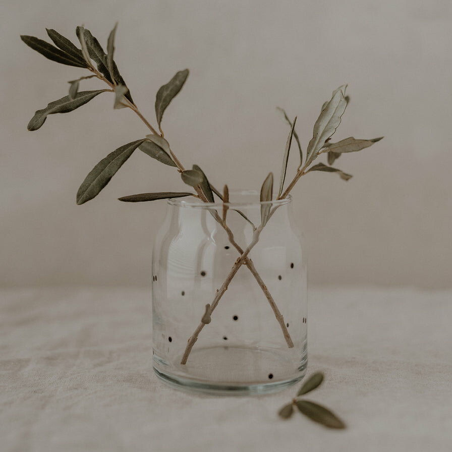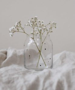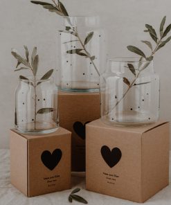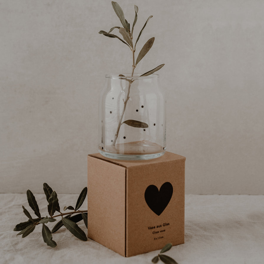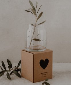 Entdecke diese wundervolle Vase mit schwarzem Design an der Glaswand. So sehen die selbstgepflückten Blumen oder geschenkten Sträuße noch viel schöner aus und schenken einem direkt ein Lächeln ins Gesicht. Perfekt als kleines Mitbringsel, als Geschenk oder als wundervolle Deko auf deinem Tisch.