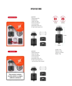 Der Widowmaker RTA von Vandy-Vape ist in enger Zusammenarbeit mit dem YouTuber „El Mono Vapeador“ entstanden. Auch schon die Tröpflervariante hat aufgrund des hervorragenden Geschmacks viele Dampfer überzeugt. Deshalb erscheint als logische Konsequenz nun die Weiterentwicklung als Tank Variante dieses erstklassigen Selbstwickelverdampfers. Der Liquidtank hat ein Füllvolumen von 5 ml bzw. 6 ml mit dem beiliegenden Bubble Glas Tank und ist sowohl für Einsteiger als auch für erfahrene und ambitionierte Dampfer besonders empfehlenswert.
