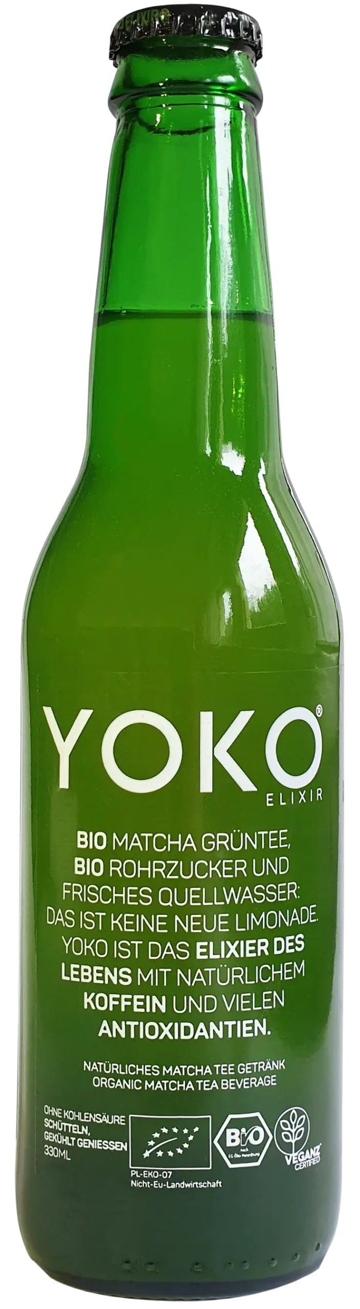 YOKO Bio Matcha ist ein «Lebenselixir» aus hochwertigem Matcha-Grünteepulver, etwas Rohrzucker und erfrischendem Wasser.
